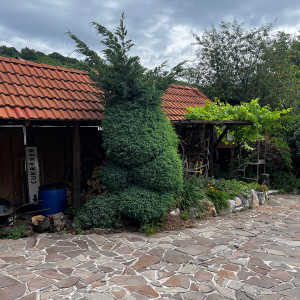 Pred druhým domom zastrešená terasa s bitúnkom a s údiarňou.