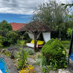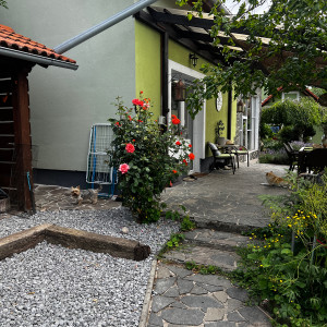V spodnej časti pozemku sa nachádza veľký altánok s kamennou pivnicou.
